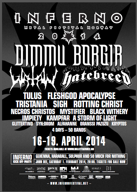 Inferno Festival 2014 - April 16-19th - DIMMU BORGIR, WATAIN, HATEBREED, ROTTING CHRIST, FLESHGOD APOCALYPSE, TRISTANIA and many more to be added...